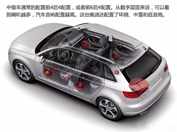 许多车主在购车时都会被车商、4S店导购告知,这台车是配置的多少个喇叭的音响系统。音响系统的好声音和喇叭数量有关系统吗?从C级普通车型到A级豪车,我们可以看到原车的影音娱乐系统的配置是从简单到复杂。许多普通的小车通常是顶配的前4后2的6喇叭配置,普通版的则减配为前2后2配置;这里的前4是指前声场的前左前右声道分别用1只高音和1只中低音;后2的配置,通常是用后左后右声道各用一只6寸或5寸中音喇叭用来发出响声,好一点的在中音喇叭中间加一个高音杯,让高音稍微增多一点点。中级车通常的配置则会有前4后4配置,或者前6后4配置。从数字层面来说,可以看到喇叭越多,汽车音响配置越高。