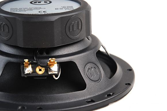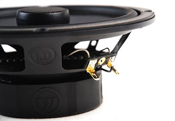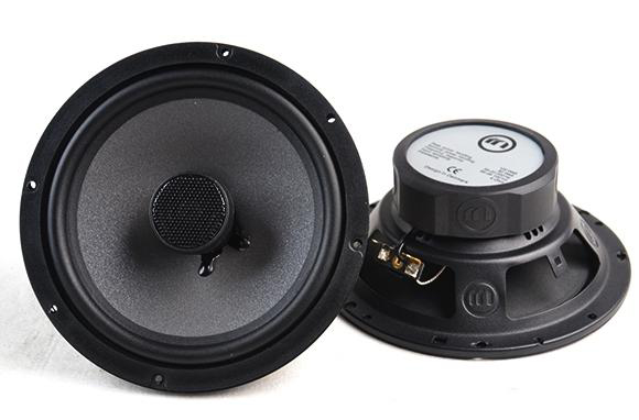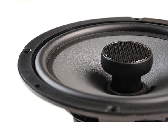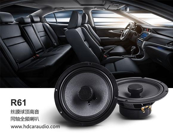 在一般的前4后2的6喇叭升级配置中,音悦传真建议后2选用R61发烧级丝膜球顶高音全频同轴喇叭。R61同轴喇叭,是将发烧级的中低音与3/4寸丝膜球顶高音同轴设计而成,一个中音位置安装即可搞定,声音灵敏度高,整体平衡度好,声音听感通透,良好的中高频特性和前声场喇叭有良好的匹配度,高灵敏度设计用原车主机驱动也有好效果。