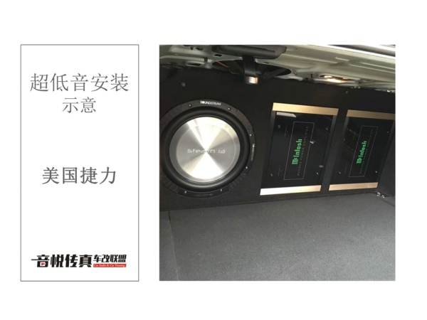 超低音美国捷力倒模安装在尾箱 这样的安装设计并不是没有道理的 这样的安装可以使得整套音响的喇叭呈现出环绕立体的音效 使得整套系统在原有的基础上更上一层楼