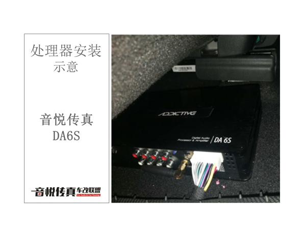 处理器安装在副驾座椅下方,不占空间,音悦传真DA6S是根据车型和喇叭配置主动式电子分频.根据喇叭安装位置而精准时间校正。根据车主听音风格EQ均衡而音色修饰。集数字电声科技与发烧音响文化,可以接入原车音响系统,发烧音响主机,为音响爱好者量身定制精准的发烧级音响效果。