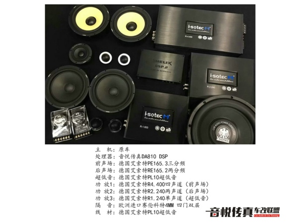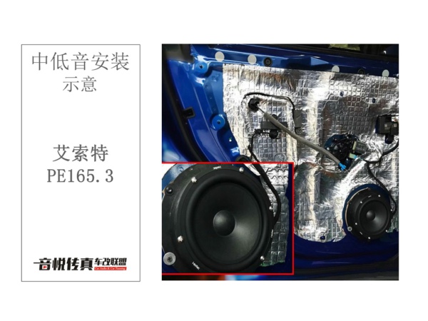 在喇叭的升级上,前声场选择一套艾索特PE165.3三分频喇叭,在复杂的汽车聆听环境,三分频的喇叭明显比两分频更有优势,多一只中音,在细节以及音乐表现力更为出色。