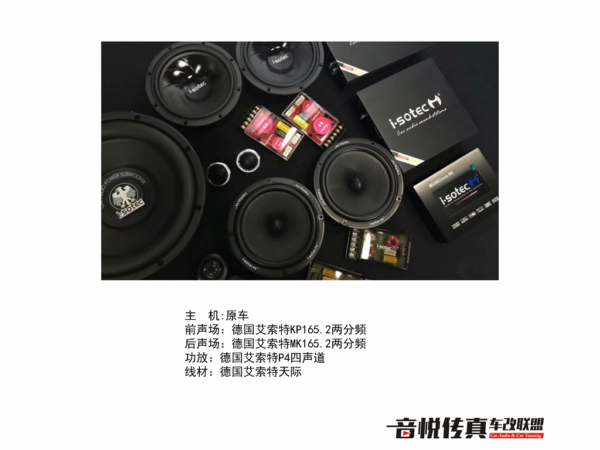 前声场更换一套德国艾索特KP465.2两分频 165.2两分频能很好的把握住音乐节奏 毫不拖泥带水 高音通透 中低音浑厚 能很好的还原现场细微的混响信号