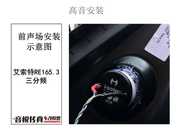 客户对原车音响不太满意,来到常州道声,结合听音要求和预算 搭配一下改装方案,最后确定前门采用德国艾索特参考级RE165.3三分频做主声场,全原装位安装 。