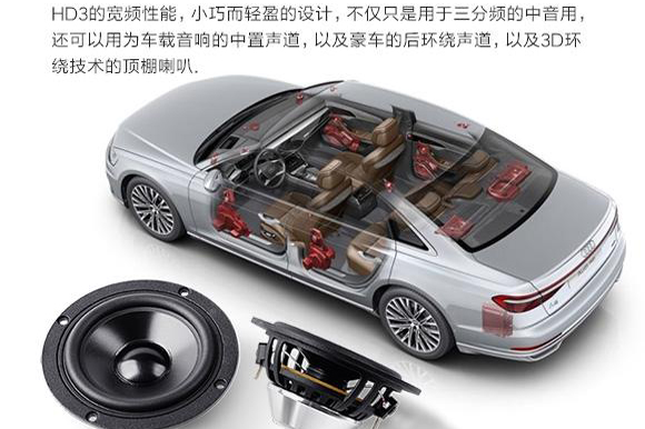HD3的宽频性能,小巧而轻盈的设计,不仅只是用于三分频的中音用,还可以用为车载音响的中置声道,以及豪车的后环绕声道,以及3D环绕技术的顶棚喇叭,安装特别简单,而且HD3的喇叭设计,也是应用小功率驱动就有好效果的设计思维。
