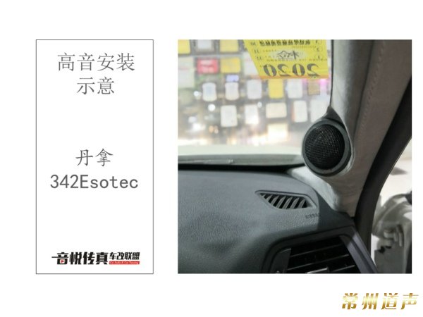 前声场丹拿Esotec342高音喇叭是倒模安装在A柱上,汽车中最重要的就是整个音响系统的安装,尤其是喇叭的安装技术。因为一辆轿车的音响优劣,不但与音响本身的质量有关系,还与音响的安装技术有直接关系。