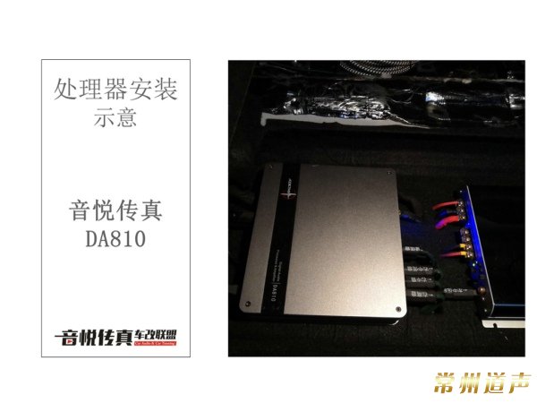 处理器安装的是音悦传真DA810,音乐传真的DA 810内置10路DSP的8声道输出功放,可以说是整套系统的灵魂,像是乐队中指挥家的存在,根据车型和喇叭配置主动式电子分频;根据喇叭安装位置而精准时间校准,根据车主听音风格EQ均衡而音色修饰。