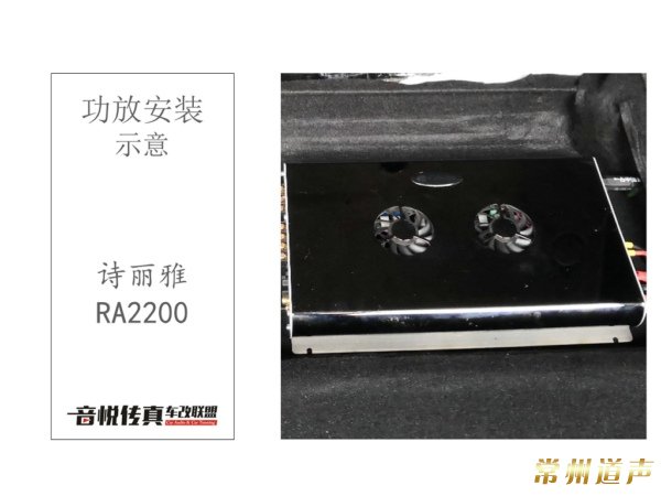 喇叭安装了但是汽车原车的主机并不足以推动喇叭,不能让喇叭应有的效果发挥出来,所以就需要安装一台诗丽亚RA2200来推动声场的低频 而一台诗芬尼推动声场中频和高频 最后就由一台魔乐歌的80.2来推超低音,在喇叭处理器和功放的相互辅助之下使得高频明亮通透,中频通透顺畅,低频丰满浑厚,