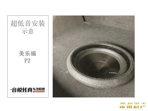 超低音安装在尾箱,超低音对于渲染音乐的氛围,增加音乐的真实感有很大的帮助,搭配一只美乐福P2低音,使乐器部分的表现更加细致。