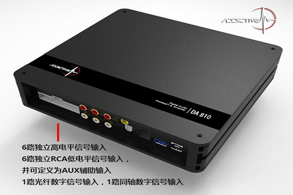 傲娇的还有它的音质从音乐传真给出的DA 810的DSP功放来看,它的信号输入为6路独立的高低电平信号输入,可以与原车线束直接对插,安装非常方便,另外还增加了光纤和同轴数字信号输入,方便连接越来越多的数字流媒体播放器。