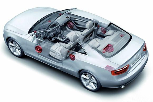合资车型的高端车系大多是这样的配置,前声场是3路配置但通常为中高音合在一起为一路,中低音为一路(如宝马),后门为两声道。这样的音响配置,升级的方法可以是前面6声道(高音+中音+低音),后门为两声道配置,加带被动分频套装喇叭或者后面也是主动是分频。这样的配置,DSP功放应是8声道,或者10声道处理。