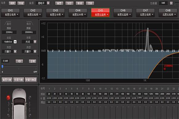 先来说说市场上的4声道功率输出的DSP功放,他们的基本配置都是推前后声场各左右声道,尽管可以对前后门的喇叭也进行高通分频设置,但这与普通的车载功放内置功能一样,时间校准作用不大,因为它与主机的左右平衡功能相类似,因此这样的DSP功放所发挥的效能就是一台小功率的功放加了EQ功能,而发挥不出DSP处理器的强大优势。要如何发挥DSP的优势,我们从下面几个场景分析: