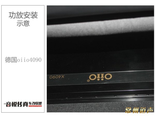 德国oiio4090功放安装在后排座椅下,安装在座椅下使得功放更稳固 实用。