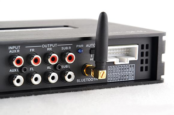 DA 6S并不是那种内置DSP的大功率专用功放,比一本杂志还略小的体积使DA 6S安装方便。厚重的黑色拉丝铝外壳拿到手很有份量感,正中间是ADDICTIVE(音悦传真)的标志,工作时会亮暗红色。输入有两种:4声道的高电平输入还有1组RCA辅助输入,现有市场9成车型可以直接对插而应用。音悦传真发现,现在实际应用DSP功放的车主,绝大部分都是直接用原车主机来听歌,这也说明高电平输入通路要处理得好,因为这才是主流。DA 6S针对高电平信号输入的通路,对噪声抑制、前级信号的处理下足功夫,使它和原车主机有更好的音质表现。如在软件里设置噪声“阀”,可使背景更安静效果更佳;电路处理中,也用更加音质型的耦合电容和侦测电路,使高电平输入也有较大的动态、更好的音色。音悦传真认为,将高电平输入做好,才是专用DSP的真正实力所在。