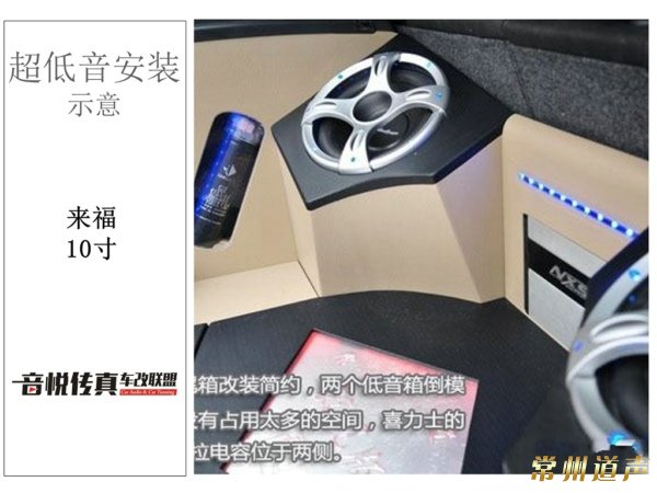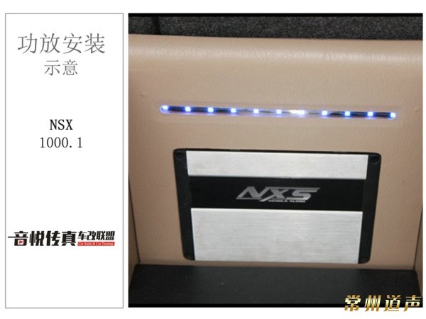 后尾箱的超低音系统是由美国的NXD1000.1来推2个福的R310寸低音。两侧是2个喜力士一法拉电容。