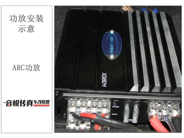 一台ARC功放安装在座椅下用来推推动前后声场的喇叭 让喇叭播放出的音乐音效更清晰
