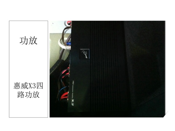 惠威X3四路功放安装在后靠背上,节省空间,功放安装完,音乐立刻变得节奏感十足,音质更加的浑厚有力;
