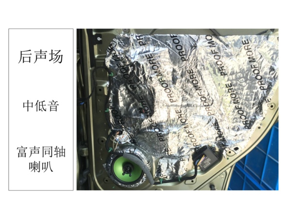后声场安装一套富声同轴喇叭,主要是用来衔接前声场,让后排座椅的人也能很好的听到。