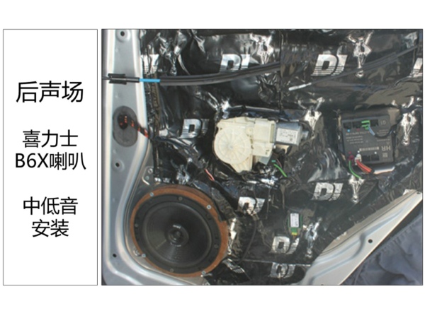 为了让后排座椅的人也能更好的享受音乐,用德国喜力士B6X同轴喇叭装后声场,