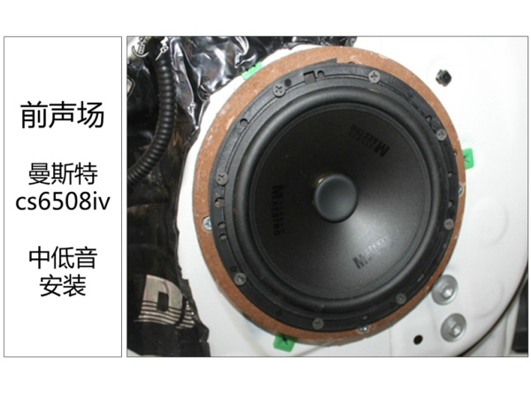 前声场安装一套曼斯特cs6508iv,曼斯特无音染的精确原音。且器材性能稳定,即使应对极端嘈杂的环境,也能让人在汽车里感觉和音乐厅欣赏音乐一样地舒服。