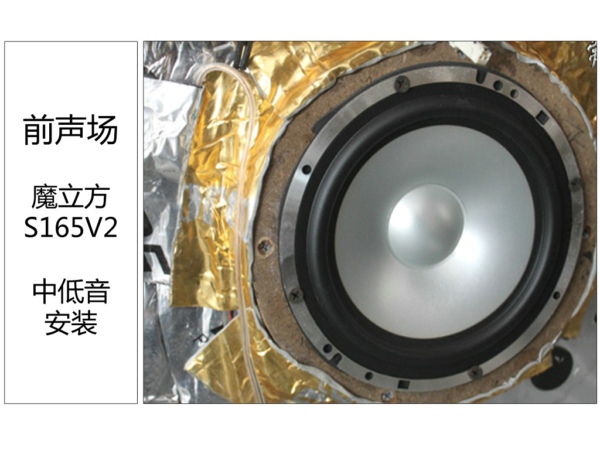 前声场安装了一套魔立方S165V2这套喇叭的音质提升很大, 声音清晰,频响宽而均匀,尤其中高频出得来,音色明亮中低频扎实有力,对一些入门级音响车主来说是个惊喜!