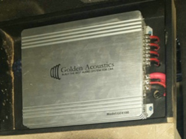 前声场和超低音安装好后,在尾箱安装一台富声CA-AM20650功放和一台黄金声学GE4100功放来分别推动前声场和超低音,功放走线很整齐细致,从线口与接线的小细节能看出师傅的专业来。