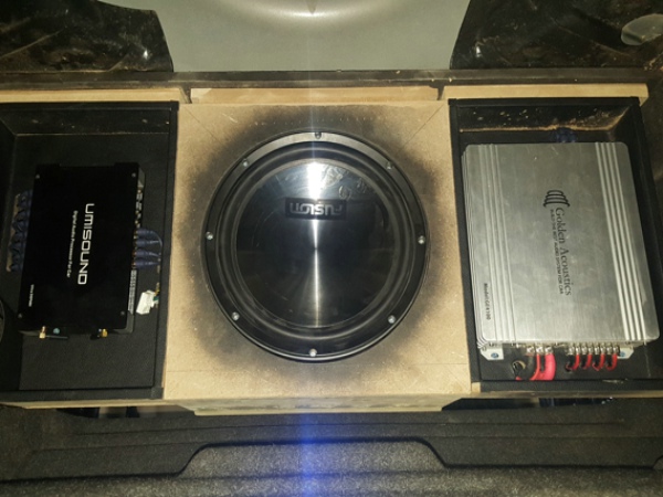 尾箱倒模,富声PF12寸低音炮安装在尾箱,让整个车内震撼十足。