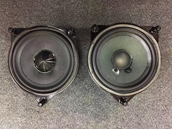 左边为柏林之声的中音喇叭,右边为拆下的原车中音喇叭。