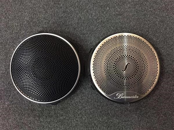 左边是拆下的原车塑料网罩,右边是柏林之声的网罩,音色金属感的表面,配以柏林之声的英文,拥有质感的同时又不失大气。