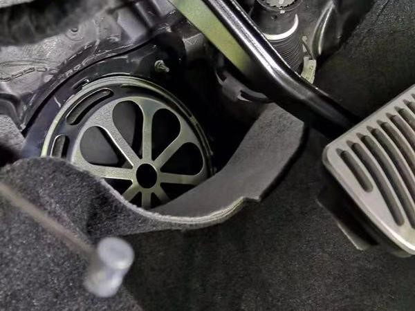 左边是拆下的原车中低音喇叭,右边是柏林之声的中低音。全车只有在副驾驶位脚坑出有一个中低音喇叭,现在改装了柏林之声后,在主驾驶位也加装了一只中低音喇叭。