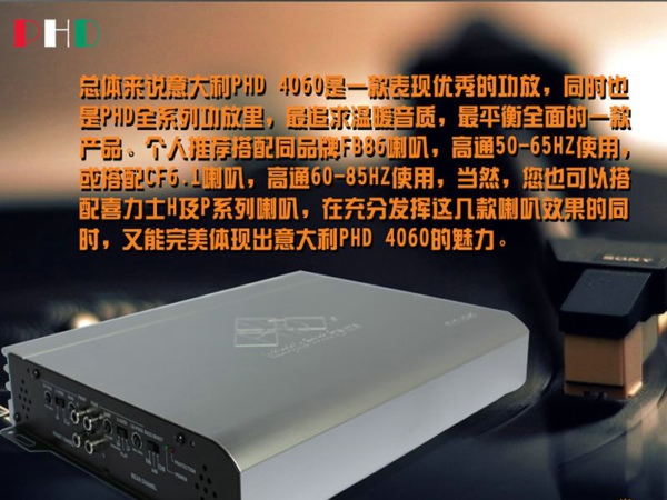 功放用的是PHD4060四路功放,作为一款音质型的功放,对于音质的输出起着不可小趋的作用,对于中低频的优质表现 ,也是受到众多车友的一致肯定,是一款非常有乐感的功放,价格也是非常的具有竞争力。