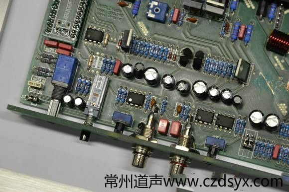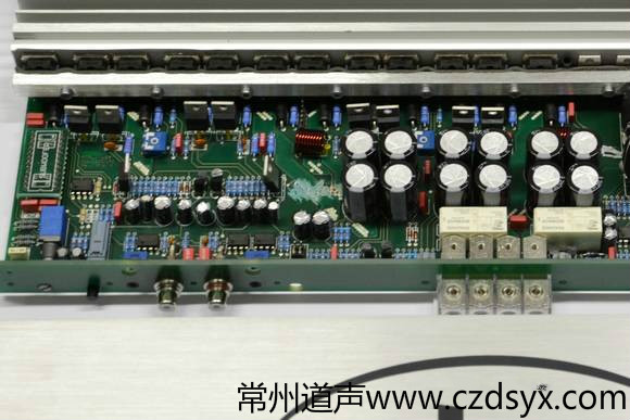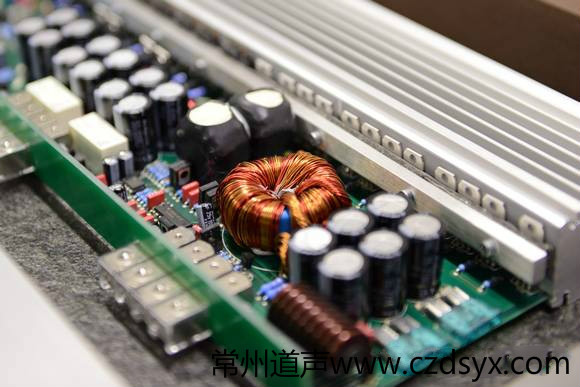 打开QUARTORIGO grave 165.2的机箱可以看到,全机使用了1个大型优质环形电源变压器。无论是电源供应电路,还是输入电平限幅调节电路和前级放大电路,连同后级功率放大电路,都采用了在高端音响器材甚至是旗舰级音响器材才会用到的对称双单声道电路结构。其中,电源供应电路共使用了16个功率发生晶体管,可为全机供应稳定且源源不绝的电流;后级功率放大电路共使用了12个功率放大晶体管,它们由8个中级放大晶体管推动。如此设计,体现了设计师对声色音效的极致追求,可谓高度发烧,最终使全机具备了强大而稳定的性能:在电源电压为13.8V和两个声道的负载均为4Ω的条件下,可产生165W×2的输出功率;在电源电压为13.8V和两个声道的负载均为2Ω的条件下,可产生315W×2的输出功率。