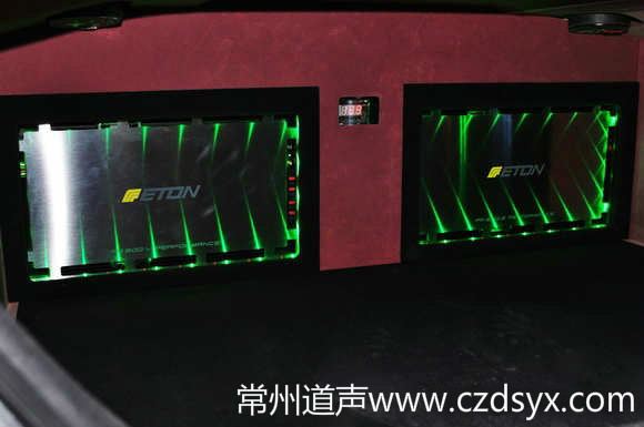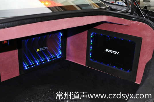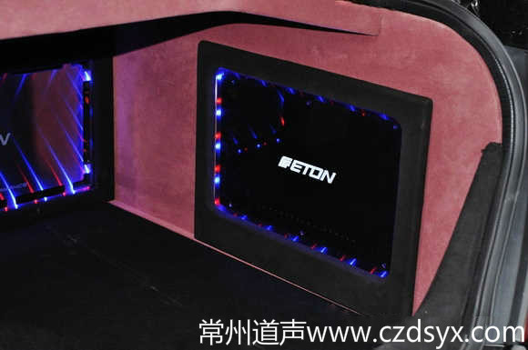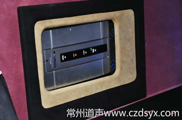 要做一台发烧音响改装车,音响配置是第一步,然后是改装到位和调校得当。常州道声改装这台日产天籁作为中国的第一台ETON的品牌展示车,首先从配置方面就用足猛料。主机采用的是日本阿尔派的DVI9990,这款主机称之为业界Hi-end级发烧主机,声音的韵味是其最大的特点。外接的显示器,是通过阿尔派2013新推出的10.2英寸超大屏幕的车载导航多媒体中心——INE-Z9310RT。