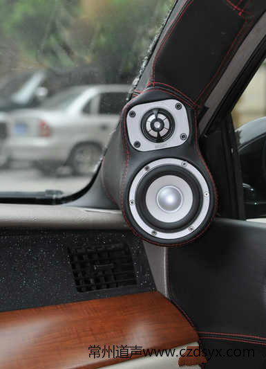 中低音直接倒模在门板板上,倒模外置出来,上半部分的皮革也是使用皮革缝制,保持与A柱一样的风格。