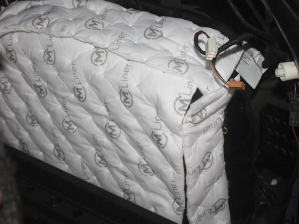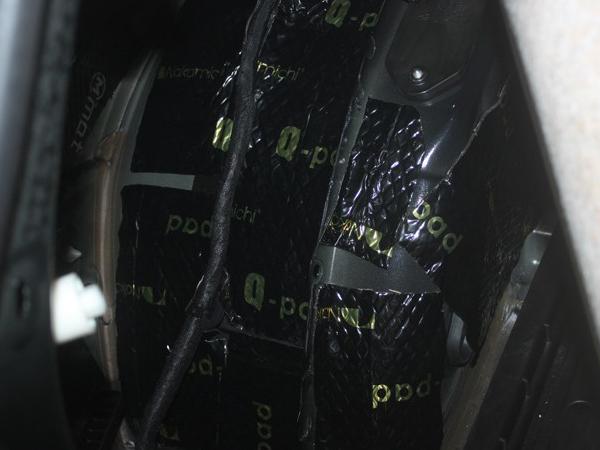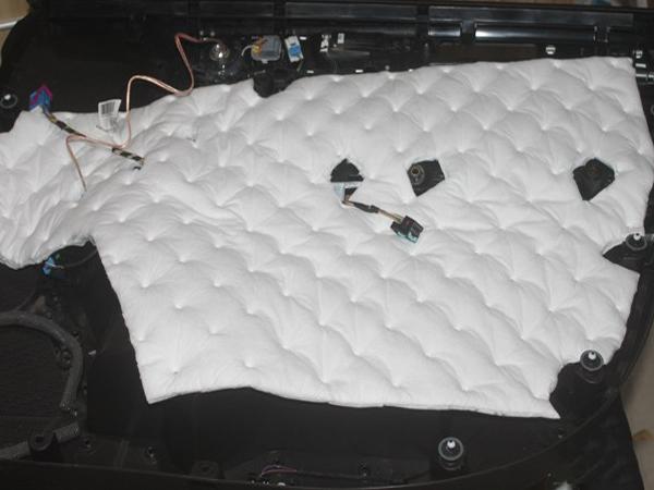 前翼子板隔音、尾箱两边轮毂双层隔音:轮弧内衬板在汽车上的作用,通常是用作于防止道路上的砂石等硬物被轮胎碾压弹起击打车身而有敲击声,另外也可以部分吸引噪声。将内衬板的内侧部分先用较薄的减振板加强,然后再贴覆一层强力吸音材料以达到吸收中高频的作用。安装之后,轮弧内衬板和轮弧车身部分形成了减振板加强与阻隔,中音填充吸音材料的多层异质吸音结构,这如同建筑声学里的穿孔板,对中低频的吸收最有效。而这又恰恰是胎噪或路噪窜入车厢里的主要频宽。其实我们从穿过居民区的高速公路两旁的隔音吸音墙的组成就可以看到,它就是如同穿孔板结构的阻隔和吸收噪音。