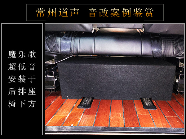 原车的音响系统并没有超低音单元,低频部分的缺失。选择一只魔乐歌超低音作为补充。合理利用后排座椅下方空间制作低音箱体,使车内空间使用率不至于减少。