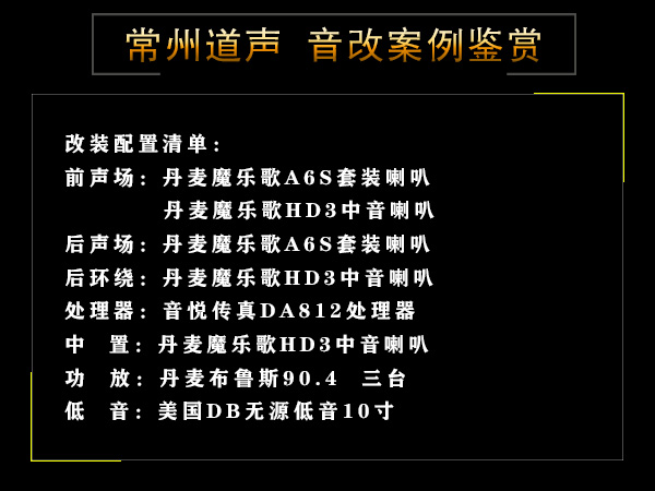 常州道声专业汽车音响隔音改装,有着专业的安装施工及调音技术,拥有先进的音频调试设备和多项检测设备,为您定制超高性价比的个性化汽车音响改装以及专业的汽车隔音降噪工程。咨询电话:18796987555