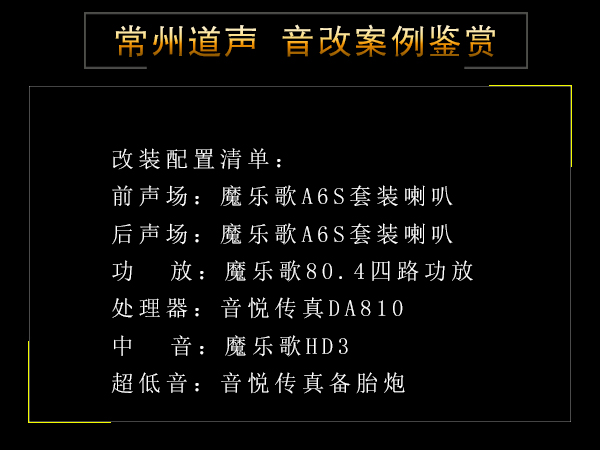 常州道声专业汽车音响隔音改装,有着专业的安装施工及调音技术,拥有先进的音频调试设备和多项检测设备,为您定制超高性价比的个性化汽车音响改装以及专业的汽车隔音降噪工程。咨询电话:18796987555