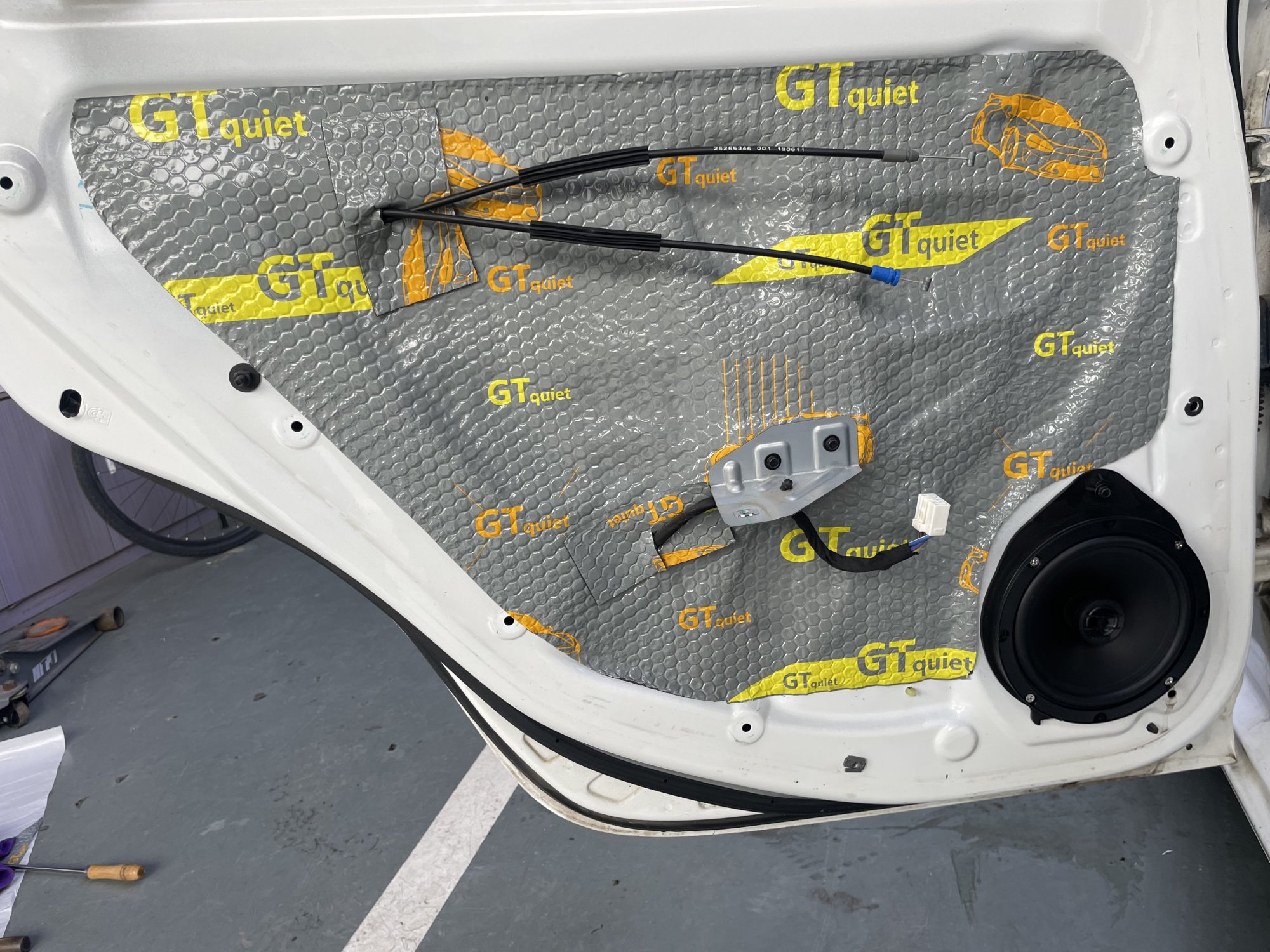 英朗 GT 原车门板单薄,仅一层塑料防水膜,高速风噪与共振明显,喇叭缺少稳固箱体。四门双层环保隔音,能有效抑制共振、降低风噪,把松散的门板变成密封扎实的音响箱体,让中低频更紧实、人声更干净、整体动态显著提升。隔音是音响升级的基础,不做隔音,再好的喇叭也无法发挥实力。