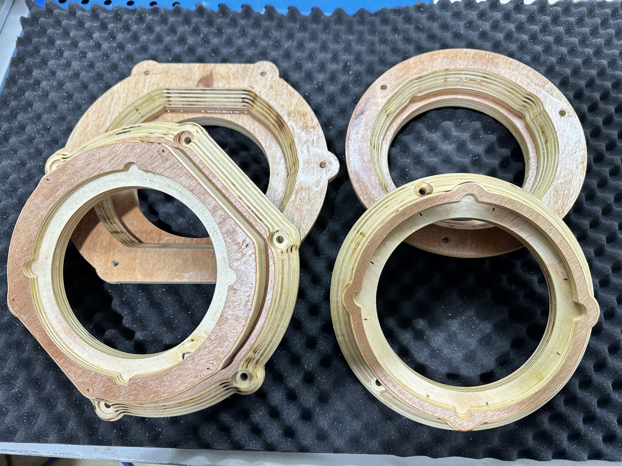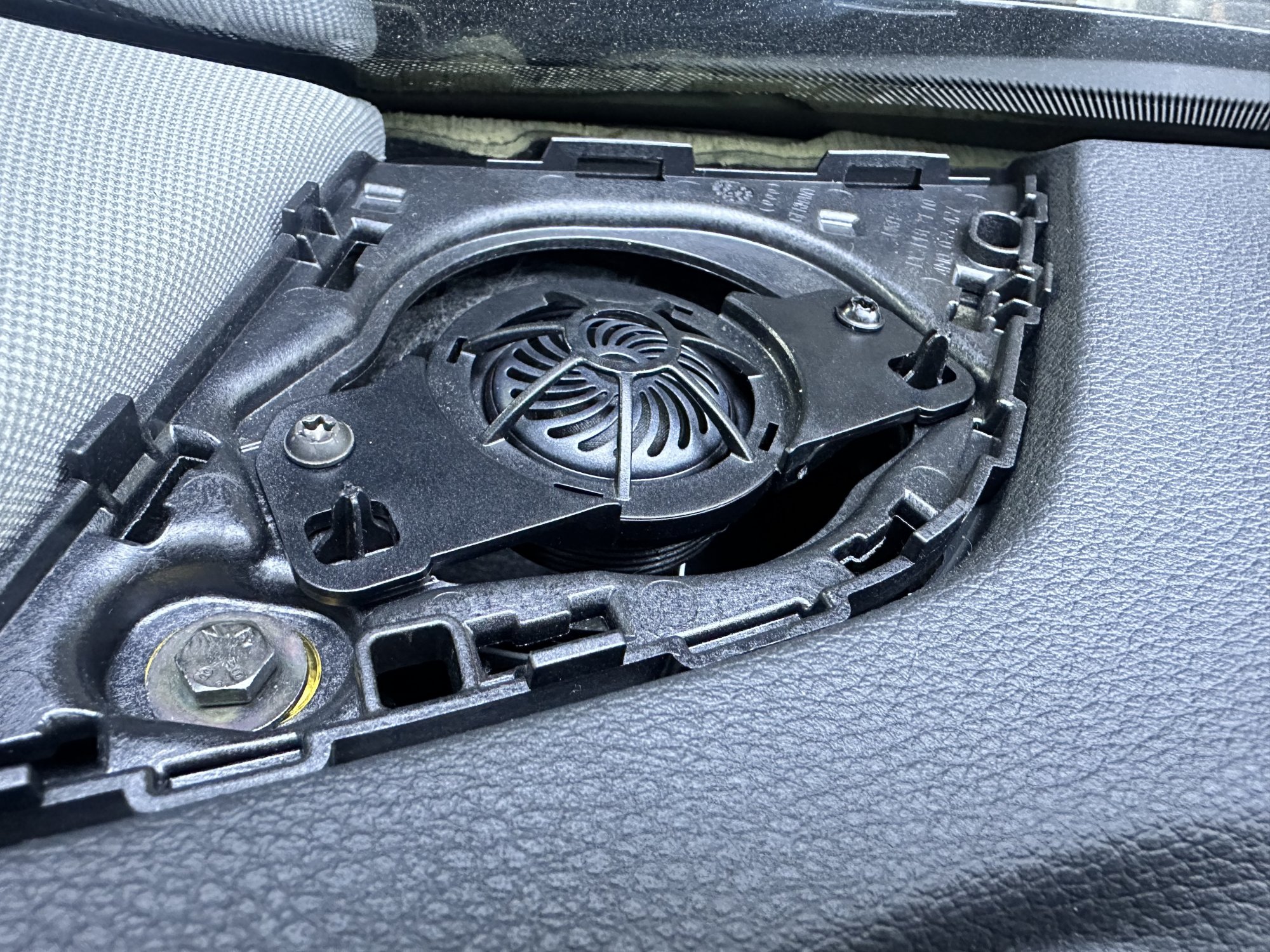喇叭安装支架,采用CNC实木雕刻,搭配推力强劲的喇叭使得全车立体环绕效果更加完美
